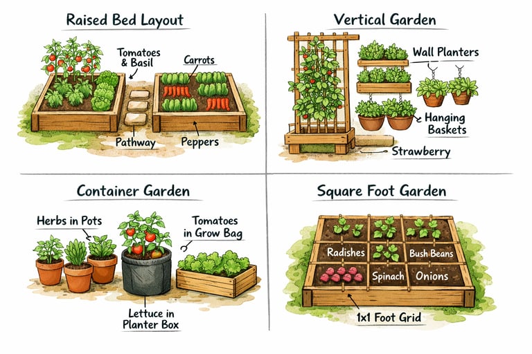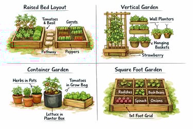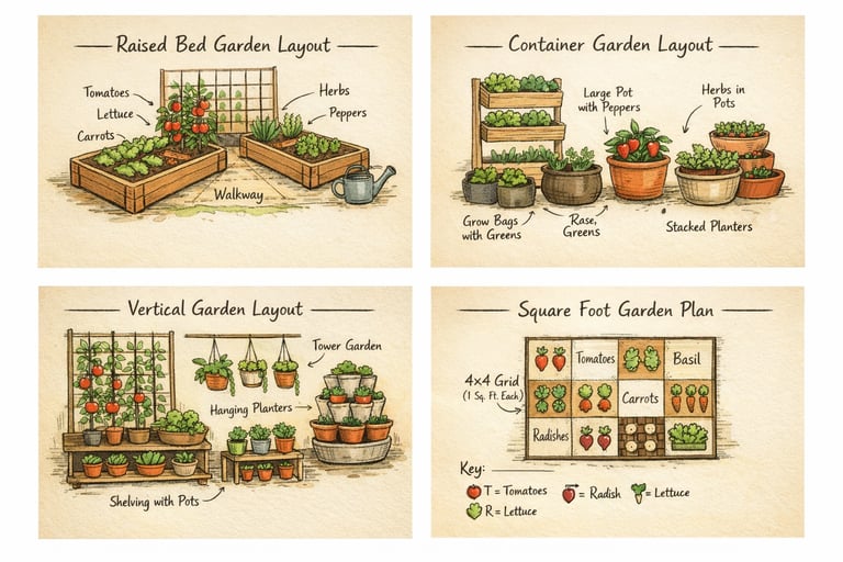 Discover smart vegetable garden layout ideas for small spaces. Perfect for balconies, patios, raised beds, and tiny backyards.